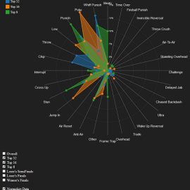 This data visualization is an experimental visualization that allows a user to explore a set of Street Fighter games. Insight can be gained on characters, match ups, common win/loss conditions, and an overall examination of the metagame. The purpose is ultimately is the examination of a player's weaknesses, and also how the game develops when managing the balance of the game.